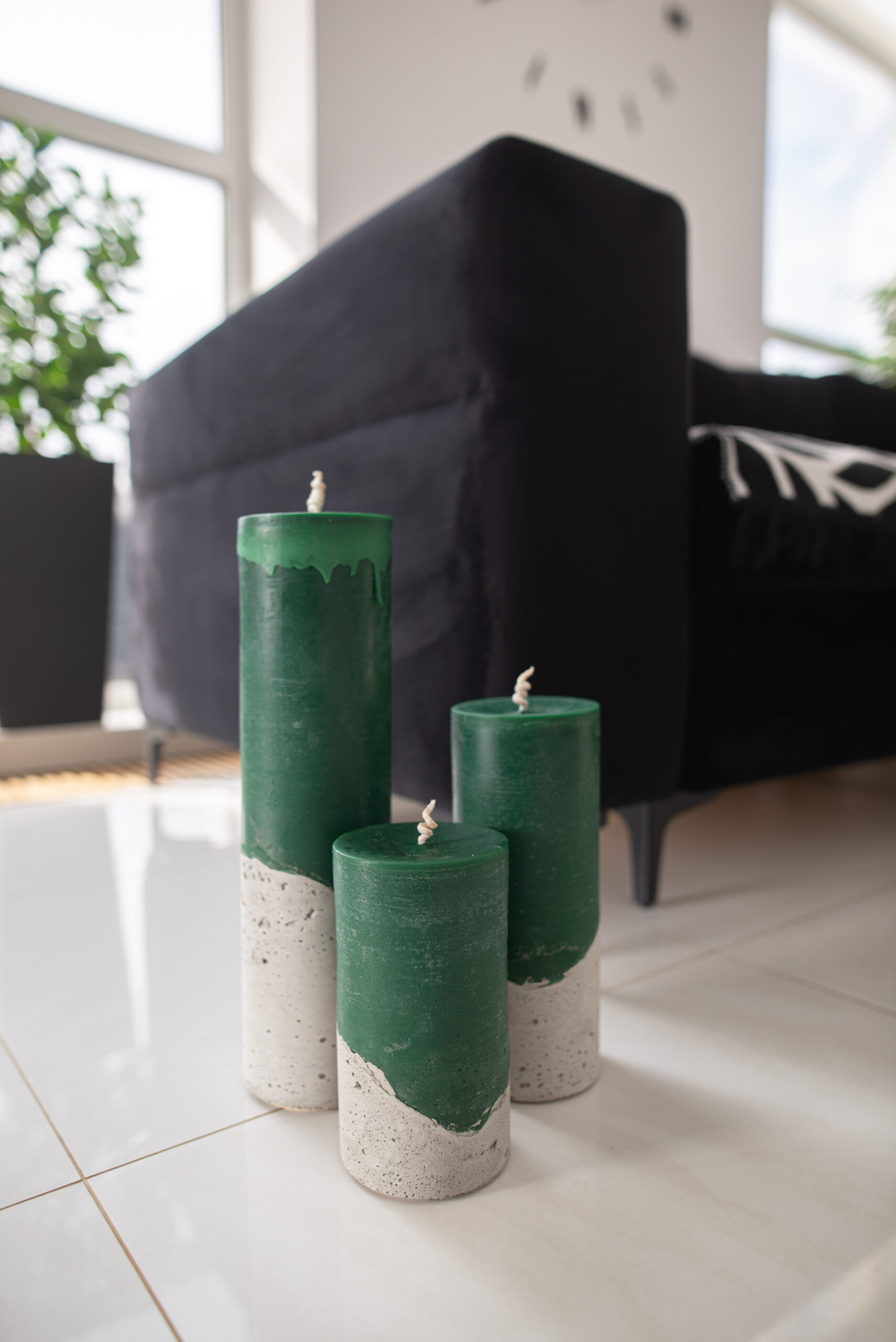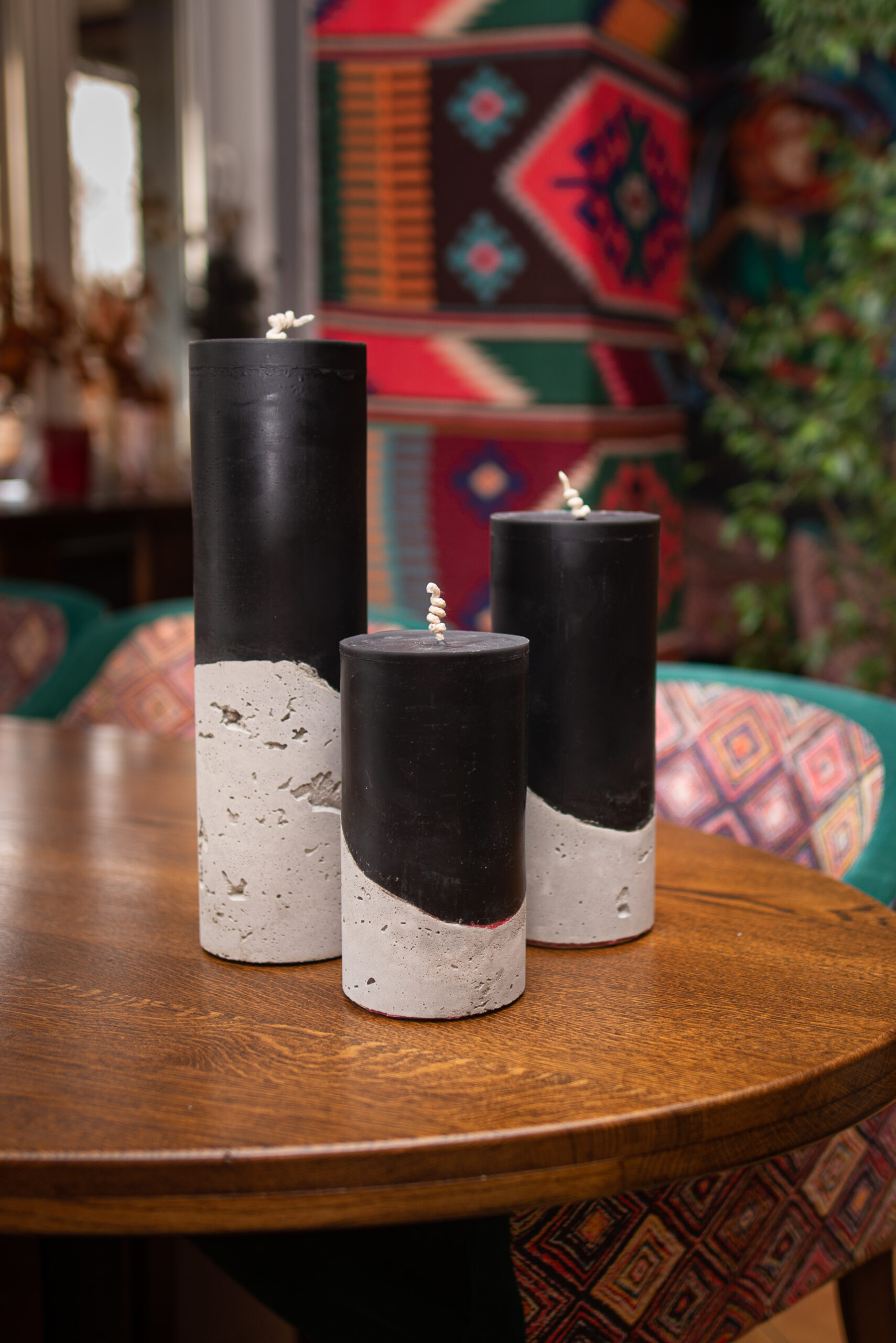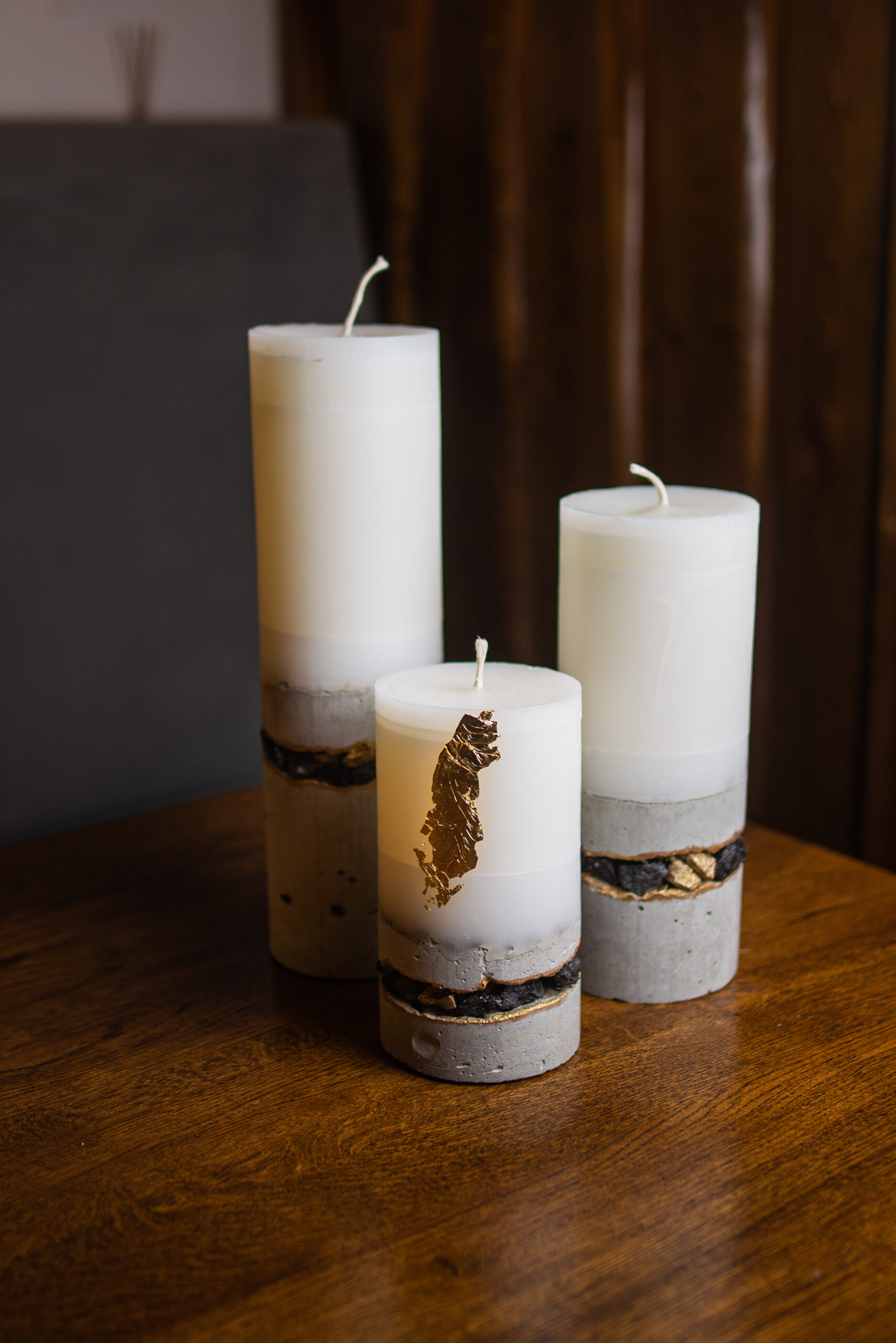 набір із трьох свічок різного розміру у бетонних формах;