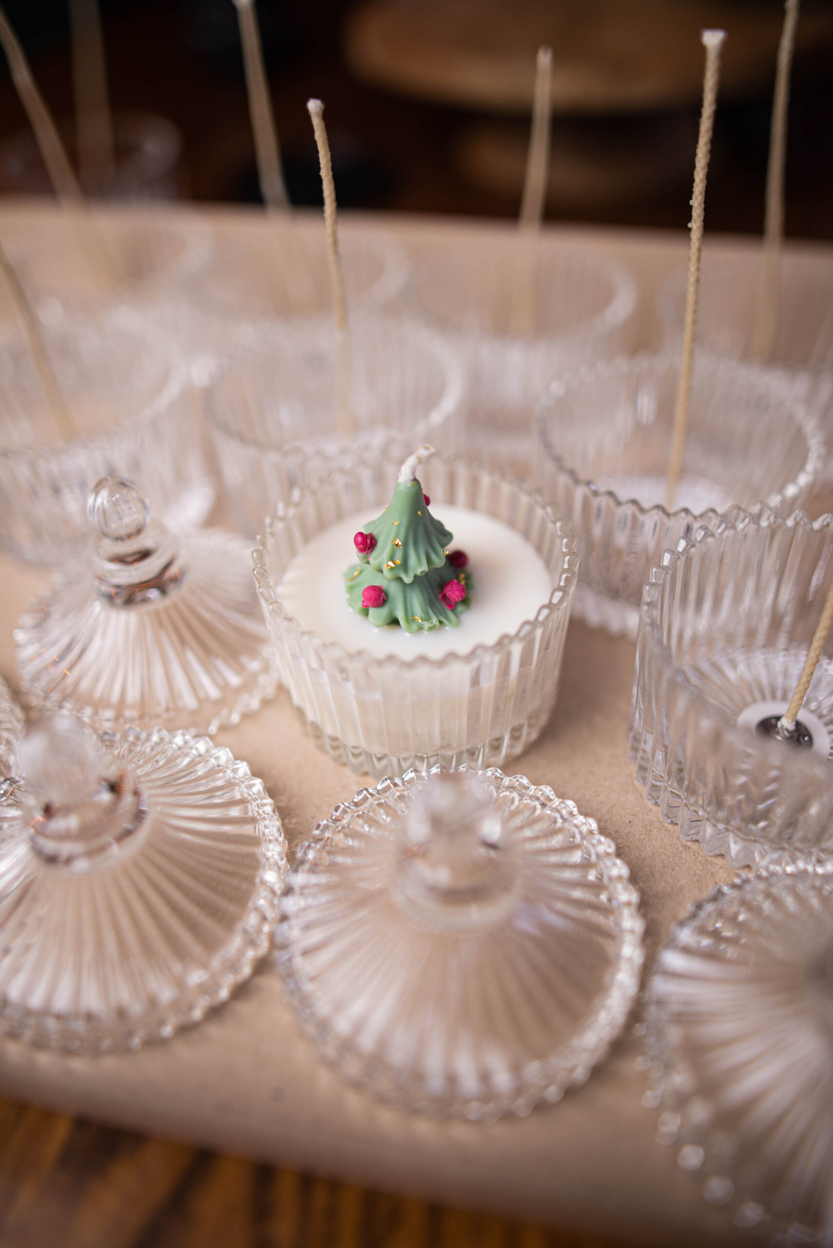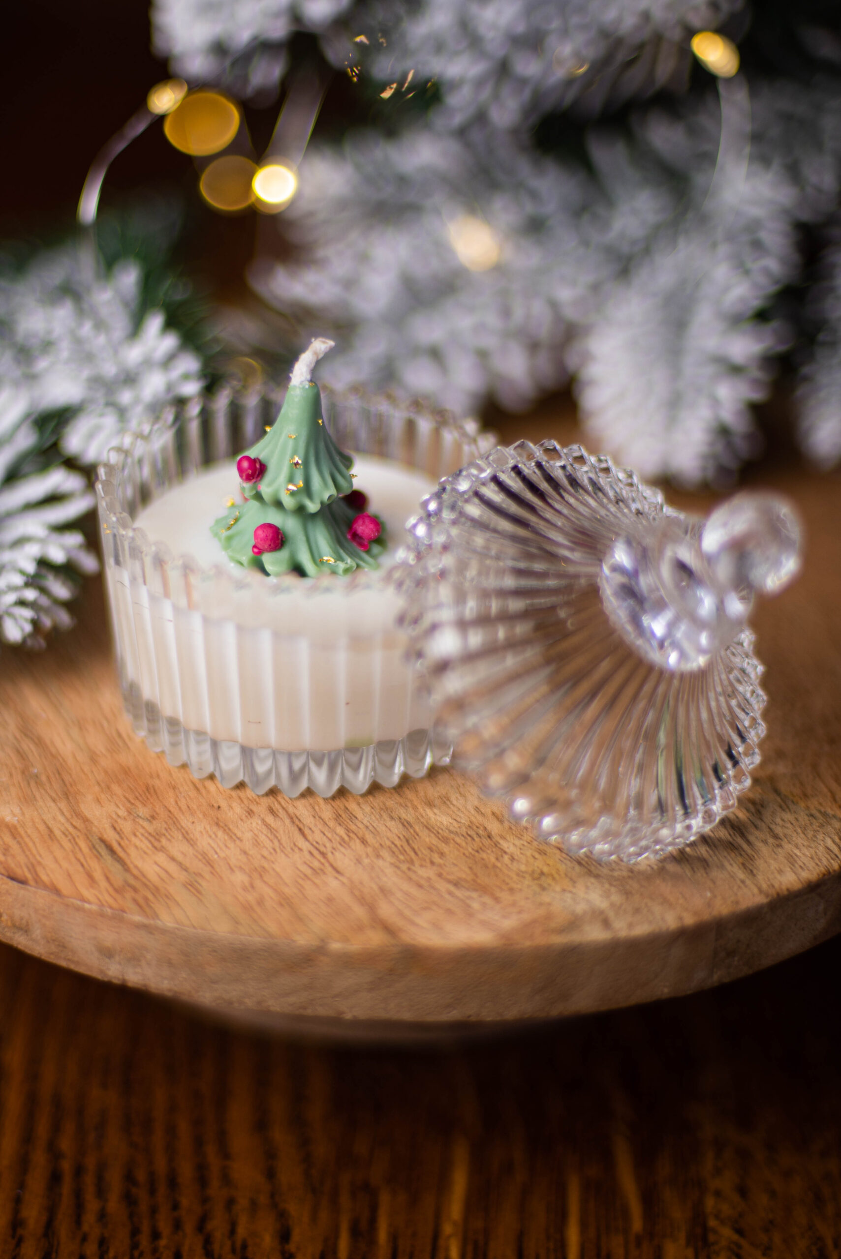кришталеве кашпо підкреслює святковий та елегантний характер свічки;